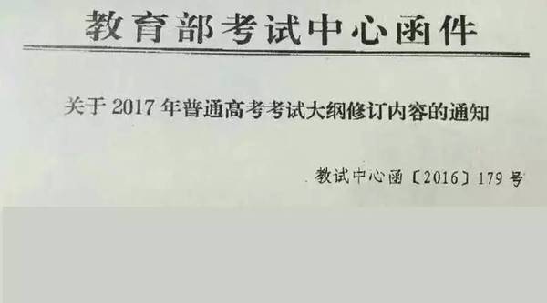 在廣泛征求意見的基礎(chǔ)上,教育部考試中心組織專家修訂、審定了2017年普通高考考試大綱。近日,教育部考試中心下發(fā)《關(guān)于2017年普通高考考試大綱修訂內(nèi)容的通知》(教試中心函〔2016〕179號(hào)),發(fā)布了2017年普通高考考試大綱修訂內(nèi)容。
