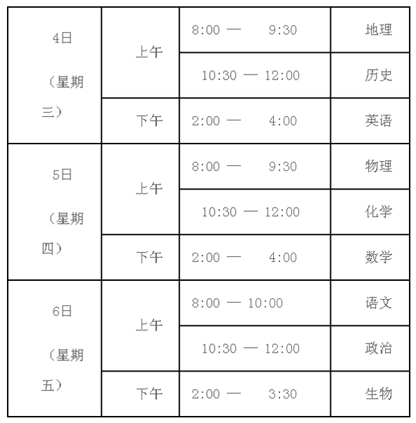 一、2017年春季會考全市統一開考九個學科。其中:高二年級開考物理、化學、歷史、地理四個學科,高三年級九個學科全部開考。