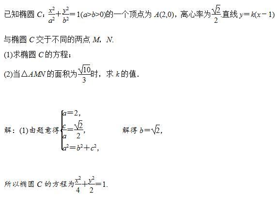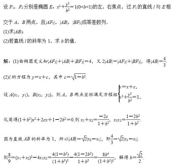 2.當直線與圓錐曲線相交時:涉及弦長問題,常用“根與系數的關系”設而不求計算弦長(即應用弦長公式);涉及弦的中點問題,常用“點差法”設而不求,將弦所在直線的斜率、弦的中點坐標聯系起來,相互轉化.同時還應充分挖掘題目中的隱含條件,尋找量與量間的關系靈活轉化,往往就能事半功倍.解題的主要規律可以概括為“聯立方程求交點,韋達定理求弦長,根的分布找范圍,曲線定義不能忘”.