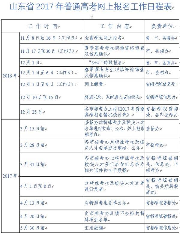 1.山東省2017年普通高考網(wǎng)上報名工作日程表