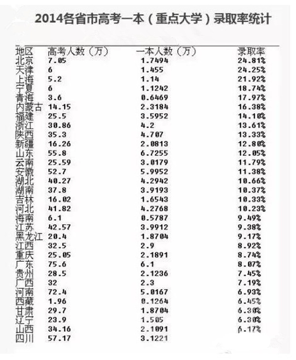最幸福的小伙伴莫過于北京、上海、天津、青海、新疆、西藏、海南和寧夏。在那里,高考的天是藍藍的天,他們有全國豐富的資源,“體制是高考引擎的優勢”。
