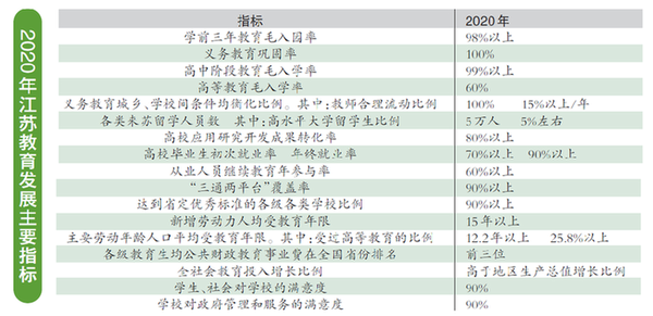 江蘇建設高水平大學和一流學科,到2020年,15所以上大學進入全國百強,100個左右學科進入基本科學指標數據庫(ESI)全球同類學科前1%行列,其中5個以上學科進入前1‰行列。江蘇促進高等學校分類發展,出臺《江蘇高等教育分類發展、分類管理和分類評估指導意見》。