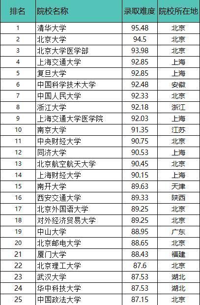 湖南的大學錄取難度排行榜,也是比較符合現實情況,前兩所是清華大學、北京大學。