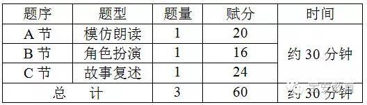 英語科聽說考試的內容、題量、計分和時間安排如下: