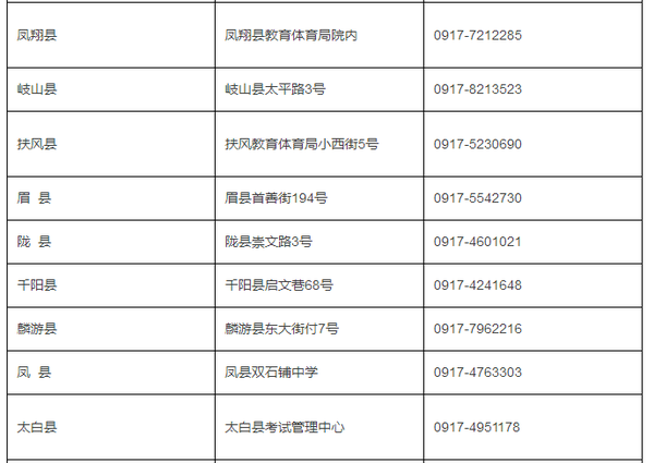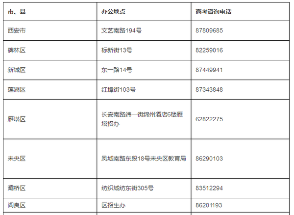 2017年高考,“陜西第一高考”始終與大家一路相隨,為高考保駕護航!距離高考還有196天,距離高考報名僅剩8天,不少考生及家長都要去縣區招生辦咨詢,現將地址及咨詢電話提供給大家。