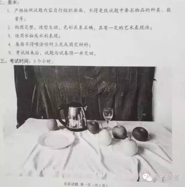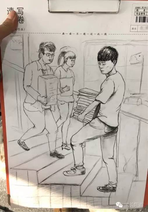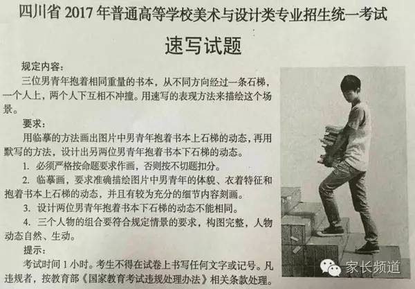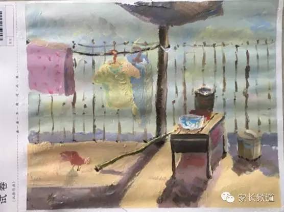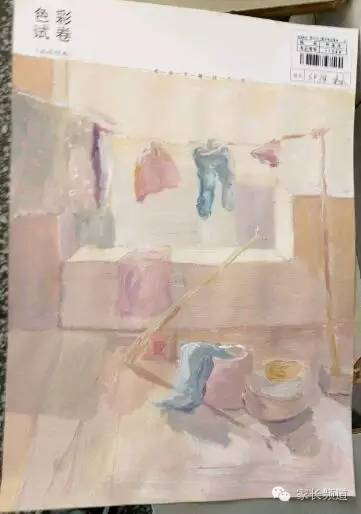 原來他們都是來參加“四川省2017年普通高等學校美術與設計類招生裝也考試”(下稱四川省美術聯考)的學生,其中色彩題的題目是默寫曬衣服的場景。美術聯考有三個科目:素描、色彩、速寫,每門課程100分,共300分。