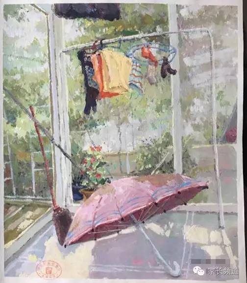 以洗后晾曬在繩上或者竹竿上的衣物和必要用具(如盆或桶)為主體,組成一個別致的畫面,環境可以是陽臺上,也可以是庭院或者草地上,但環境處理力求簡潔,不可喧賓奪主。