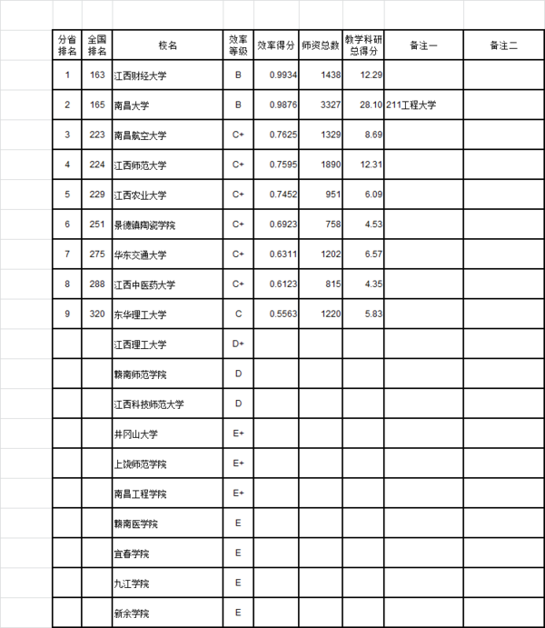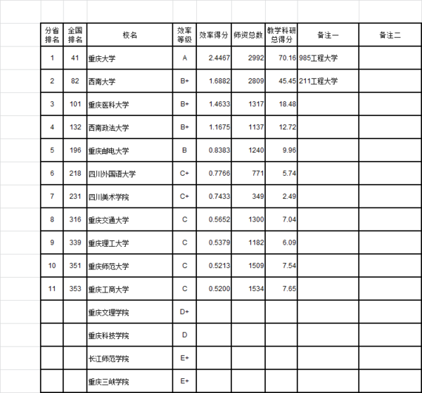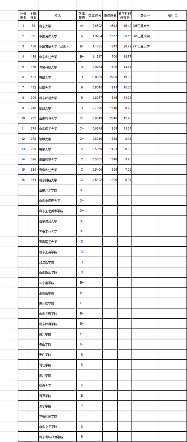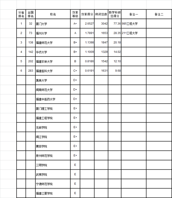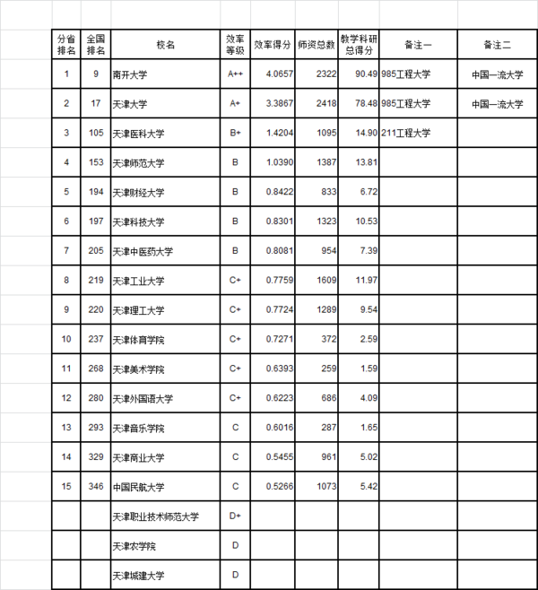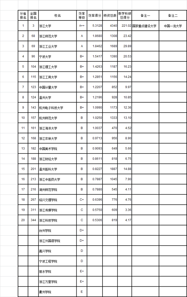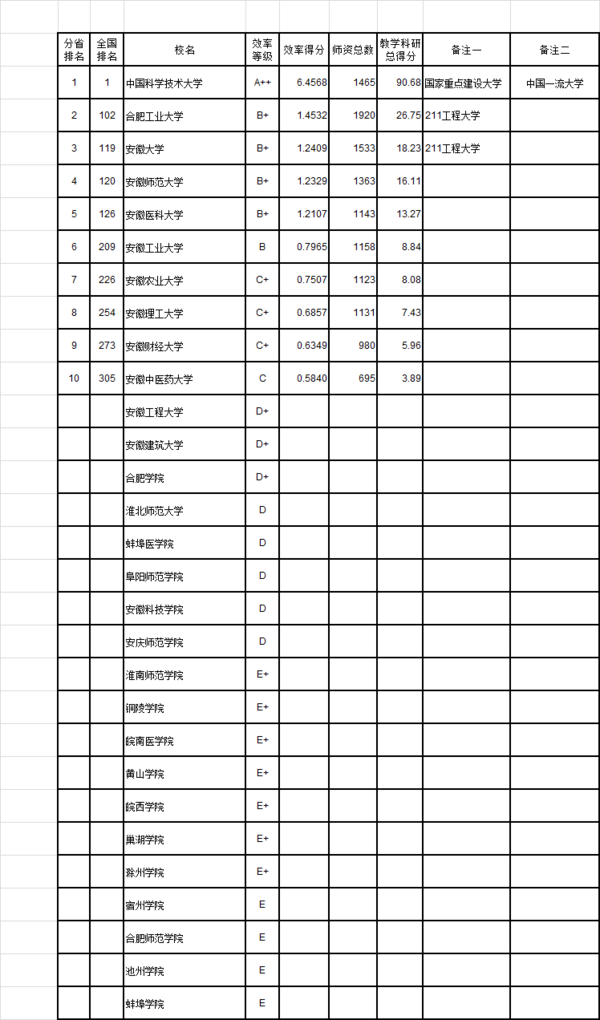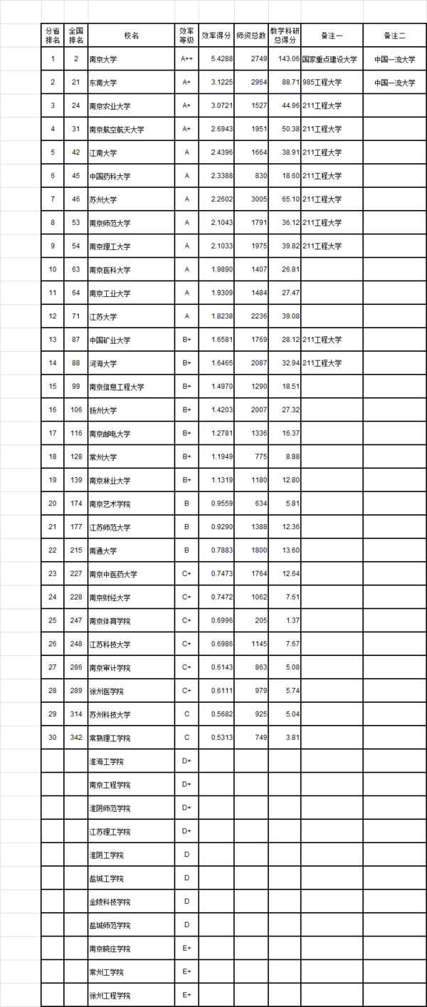 3、將每所大學的教學科研總得分除以師資總數,并將得分降序排列,就得到在同一標準下,全國721所大學的教師效率排名。