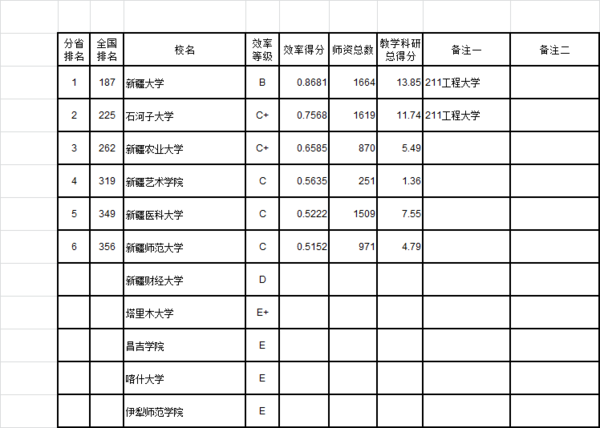 5、2016新疆維吾爾自治區大學教師效率排行榜