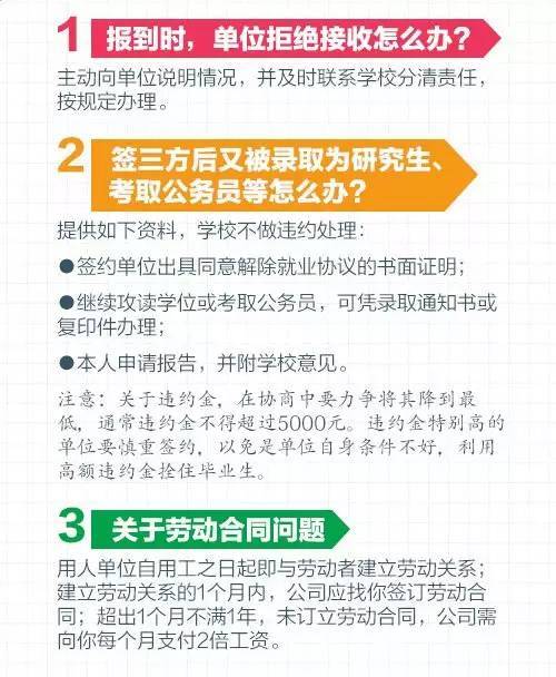 12月,求職大戰(zhàn)進(jìn)入白熱化階段。2017應(yīng)屆畢業(yè)生即將面臨簽三方、落實(shí)合同、處理檔案等問(wèn)題。提醒大家簽約要千萬(wàn)慎重!簽三方要注意什么?哪些合同要慎簽?檔案如何處理?簽了三方不想去怎么辦…你要的答案都這兒!