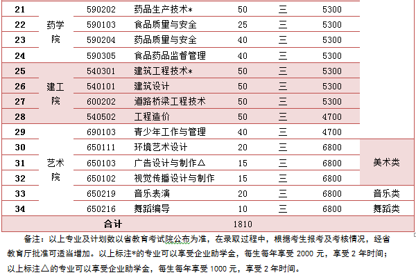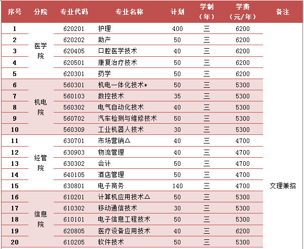 招生專業及計劃一覽表
