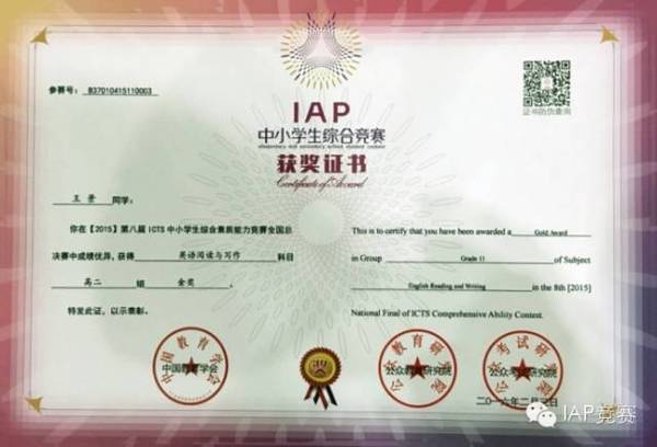 對于經常參加IAP競賽的學生來說,他們不僅可獲得一份科學有效的素質能力測評報告,還能獲得證明他們能力的獎項。在當前高校自主招生政策之下,他們得到了真真正正的“實惠”,大大提高了自主招生選拔命中率,為考生考取理想大學提供了先決條件。